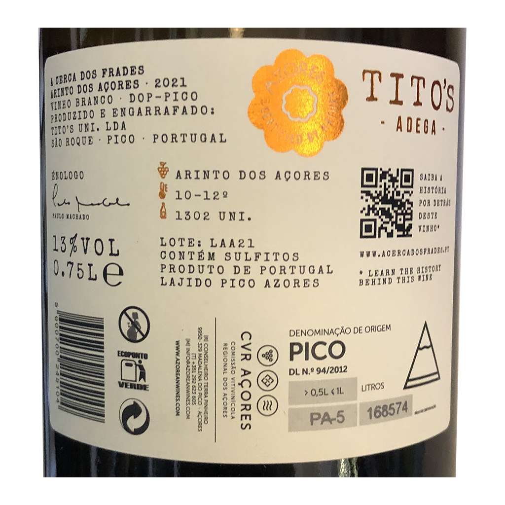 Le A Cerca dos Frades - Vin Blanc, avec 750ml est un Vin Blanc produit en/au Portugal - Açores par Tito's Adega.